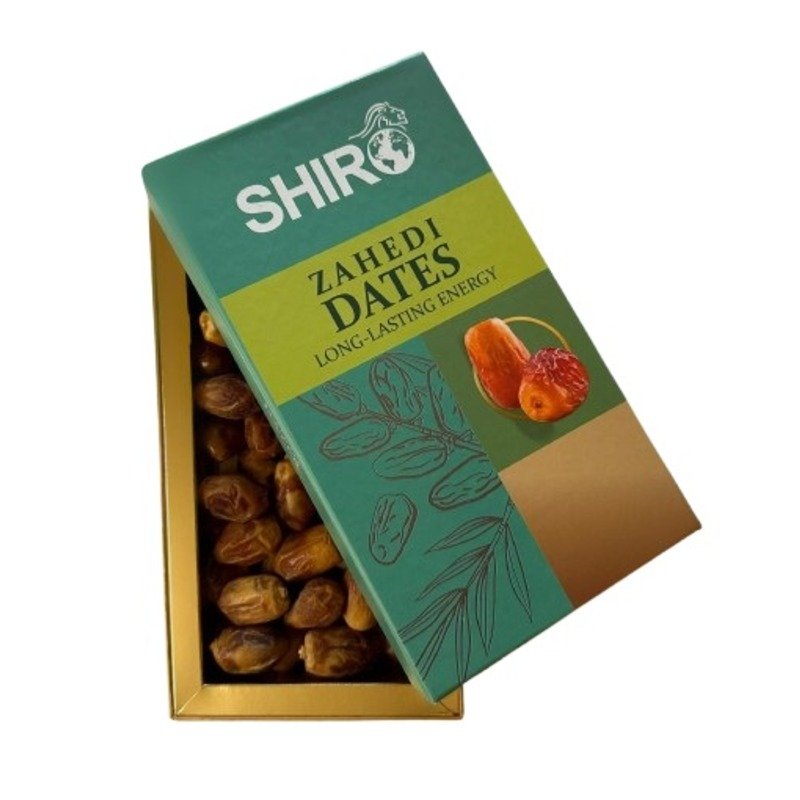 This dry date comes from the southwest of Iran , mostly from Khuzestan and Bushehr provinces. Zahedi dates grow well in hot and dry weather. The dates are picked by hand from strong palm trees. After harvest, they are dried slowly in the sun . Their skin becomes golden-brown and the inside stays sweet and dry. Shiro workers clean and sort the dates carefully before sending them to India . You receive a tasty, natural, and long-lasting snack.